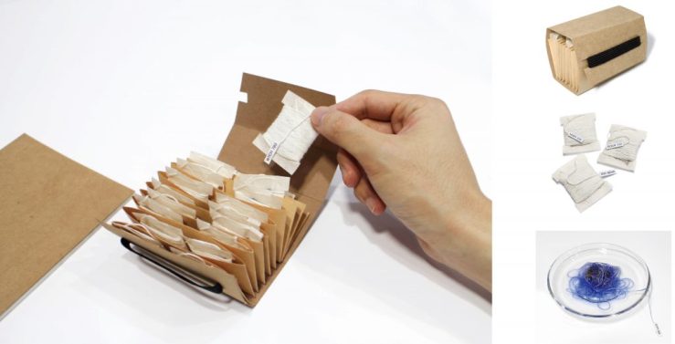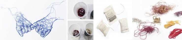 Emotion you felt when brewing tea is visualized as the dyed thread. And it is combined into words. With dyed yarn, user records and contains a little more meaningful message. I thought the dying process was like the contagious emotion of romantic relationship. Emotional line (thread) is like to establish an entangled relationship. I thought designing by thread would represent these kind of relationshipI thought the dying process was like the contagious emotion of romantic relationship. I complete my own words, connecting alphabets with the dyed yarn.